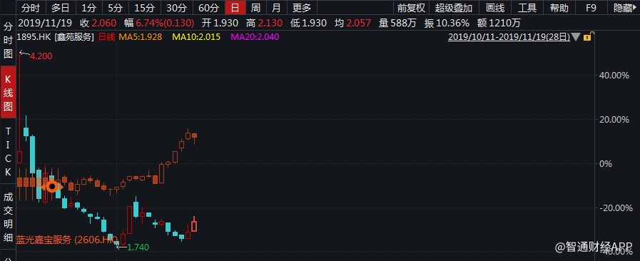 同样是物业股,鑫苑服务(01895)和蓝光嘉宝服务(02606)却走出了截然不同的行情,前者上市后震荡走低,甚至破发,而后者一路走高,现已累涨43.38%。