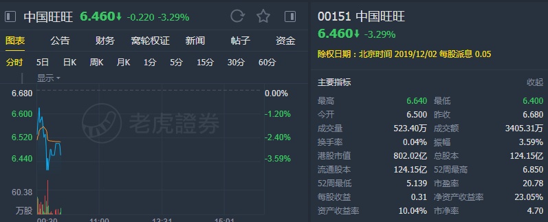 智通财经APP获悉,中金公司发布报告称,中国旺旺(00151)1HFY19业绩为收入93亿元,同比升0.6%;净利润16.1亿元,同比增18.4%,超过该行与市场预期。主要由于毛利率同比提升4.4ppt超预期,带动净利润大幅增长。维持其“跑赢行业”评级,目标价7.64港元。
