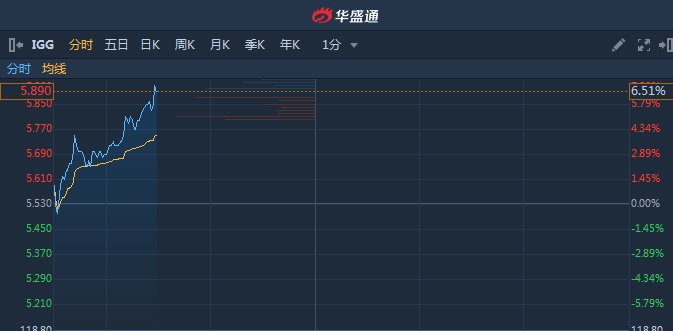 港股异动︱IGG(00799)放量续升9%突破多条均线 暂现二连阳累涨逾17%