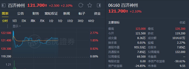 该行表示,基于最新盈利预测,上调对百济神州股份目标价,由127.84港元升至142.13港元,维持“跑赢大市”评级。