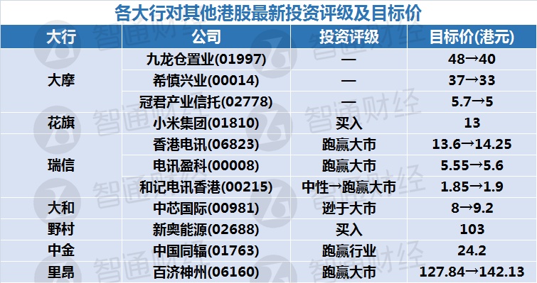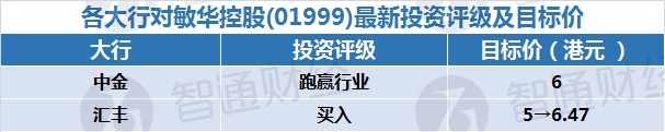 四、各大行对敏华控股(01999)最新投资评级及目标价