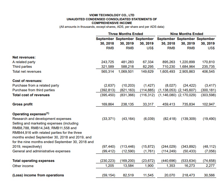 截止至2019年9月30日,云米的家庭用户数量达到260万,同比增长85%或120万。