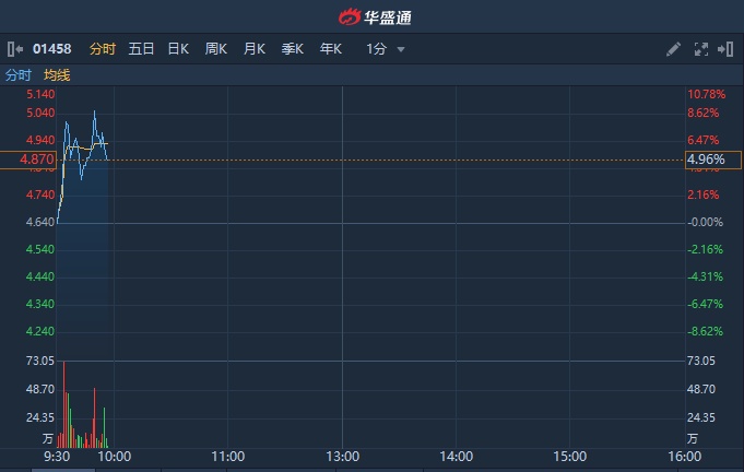 周黑鸭涨5.17%,报4.88港元,成交额2345.04万港元。