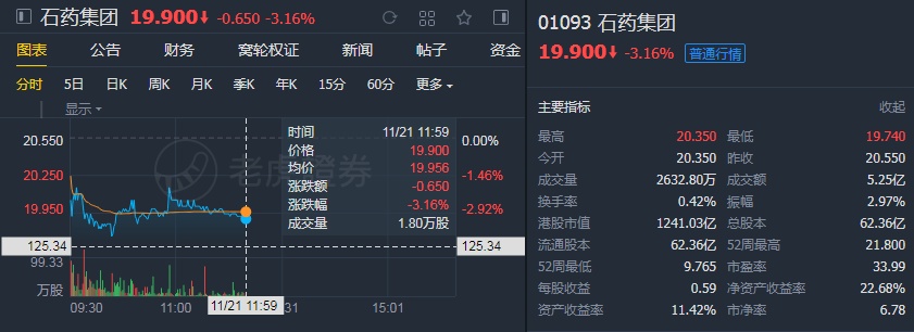 该行表示,上调对石药于2020年至2021年的净利润预测从1%至4%,反映其上季业绩表现,称该股现股价仅相当于明年预测市盈率24倍,与同业中生制药(01177)的35倍相比,石药与同业的估值折让未来可望收窄。