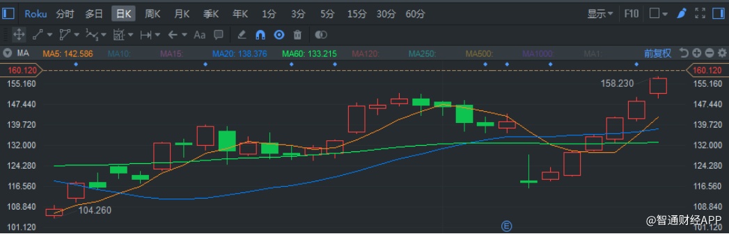 智通财经APP注意到,Roku发布Q3财报后,公司股价于11月7日至11月15日连续7个交易日的累计涨幅高达11.52%。