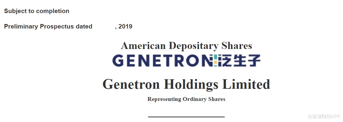 智通财经APP获悉,泛生子基因(控股)有限公司(Genetron Holdings)周四向美国证券交易委员会公开递交了招股说明书,以美国存托股票(ADS)的形式首次公开发行普通股,股票代码为“GTH”。首次公开募股筹集至多1亿美元,瑞士信贷和中金是该交易的联合账簿管理人。