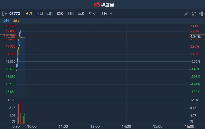 智通财经APP获悉,宝马汽车宣布,将与宁德时代在2018年签署的价值40亿欧元锂电池订单增加到73亿欧元(约合人民币569.01亿元)。受消息影响,赣锋锂业盘中涨超5%,股价创历史新高。截至发稿,涨4.86%,报17.7港元,成交额984.31万港元。