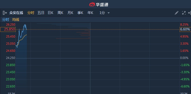 智通财经APP获悉,众安在线(06060)获小摩上调目标价39.1%至32港元,早盘股价急升,截至9时51分,涨6.39%,报价25.8港元,成交额5553万。