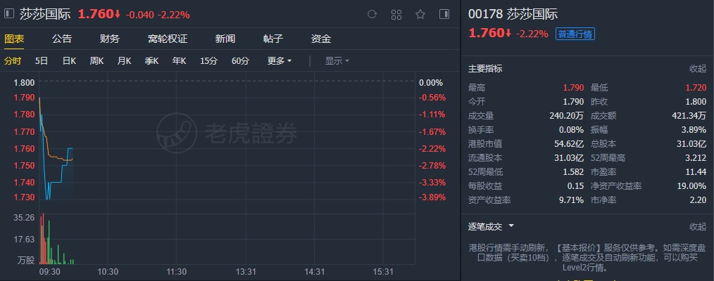 智通财经APP获悉,高盛发布研究报告,将莎莎(00178)目标价降0.6%至1.54港元,维持“中性”评级。
