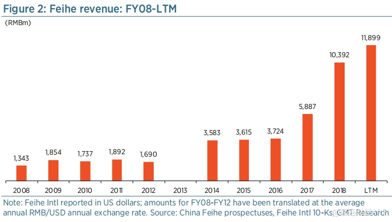 飞鹤的增长速度与来自澳大利亚的竞争对手A2 Milk相当,而后者主要通过直接或者个人代购进入中国市场。事实上,在过去几年里,飞鹤的销售额已经远远超过了A2牛奶的总销售额,如图11所示。