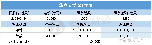 智通财经APP获悉,11月22日,华立大学(01756)配售结束。配售招股价区间为2.93-3.26港元,最终定价3.26港元,每手3260港元。