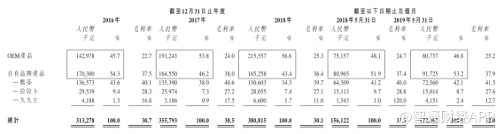 截至2016-2018年度,来自OEM产品端的收入占比平均超过50%。相比之下,公司自有品牌的产品收入比重逐年缩小。于2019年5月31日止五个月,自有品牌比重则有所加大。