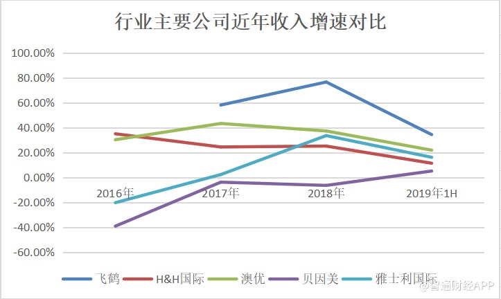 智通财经APP注意到,2019年上半年,飞鹤收入和净利润均出现大幅放缓。收入同比增长34.37%,增速不及2018年的一半,净利润同比增长60.14%,亦较2018年的93.26%,2017年的185.66%明显减慢,放缓的速度快于同行。