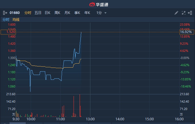 智通财经APP获悉,兆邦基地产(01660)公告,集团预期中期纯利将显著上升以及盈利总额不少于约2400万港元,较去年同期约1280万港元增加不少于约87.5%。截至发稿,涨16.92%,报1.52港元,成交额1863.03万港元。