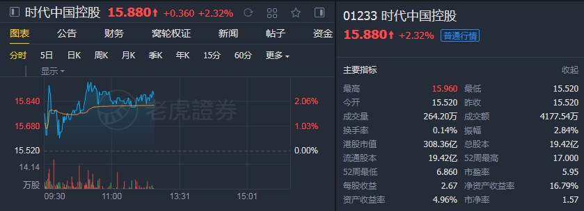 该行认为,时代中国近期与平安房地产达成有关城市重建的框架协议属正面,估计集团分拆其物管业务的特殊股息收益率约为10%,而集团目前估值为明年预估市盈率的3.9倍,对比行业平均值5.9倍,认为市场未反映集团盈利的可持续性,及城市重建的转换加速。