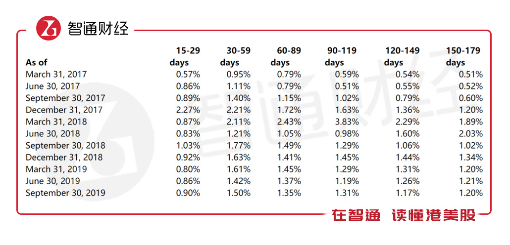 投资者可能会看到,拍拍贷的逾期率比较低,今年Q3,15-29天的逾期率为0.9%,30-59天的逾期率为1.5%,60-89天的逾期率为1.35%,90-119天的逾期率为1.31%,120-149天的逾期率1.17%,150-179天的逾期率为1.2%。从往季看,该公司的各项期间的逾期率保持相对稳定的状态。