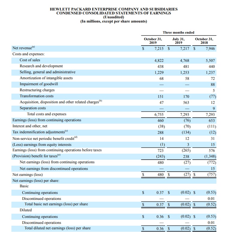 智通财经APP获悉,美东时间11月26日美股盘后,慧与公司(HPE.US)公布了2019财年第四季度业绩和全年财报,本季度慧与营收72亿美元,同比降低9%。
