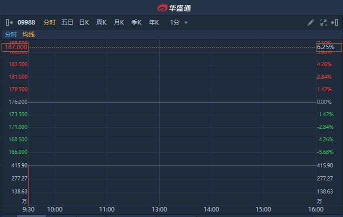 智通财经APP获悉,阿里巴巴-SW(09988)首日挂牌,公告显示,公司发行5亿股,每股定价176.00港元,每手100股,所得款项净额约875.57亿港元。截至发稿,涨6.25%,报187港元,成交额16.24亿港元。