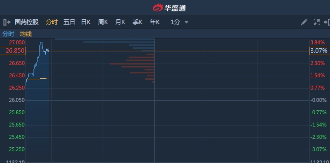 智通财经APP获悉,国药控股(01099)盘中现两宗大手成交,每股作价26.05元,共涉及1,130.56万股,共涉资2.95亿元。截至9时56分,涨2.88%,报价26.8港元,成交额3.081亿。
