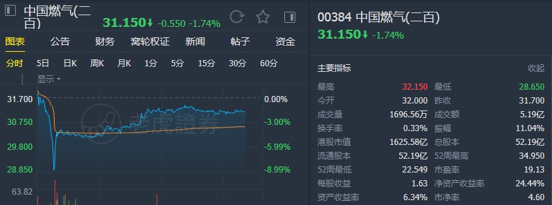 该行表示,集团的前景稳定,由于更佳的成本即时转移机制,管理层轻微上调今财年单位毛利指引至每立方米0.61元人民币。对中燃的股份目标价,由37.2港元上调至40.3港元,维持“买入”评级,并上调2020财年盈利预测1%,以反映较佳的单位毛利假设。