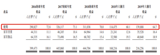 蜡烛和家居香薰是公司的主要产品,于2016-2018年及2019上半年内,蜡烛和家居香薰合共占其总收益分别83.9%、83.5%、84.6%及81.1%,余下的营收则由家居饰品业务贡献。
