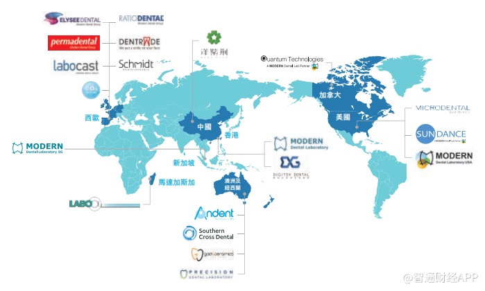 据了解,现代牙科是一家全球性的义齿器材供应商,下游客户包括牙医、牙科诊所、医院、经销商等,在西欧、澳洲、中国内地及香港占最大市场份额。其产品组合可大致分为三条产品线:固定义齿器材,例如牙冠及牙桥;活动义齿器材,例如活动基托;及其他器材,例如正畸类器材,运动防护器及防鼾器。