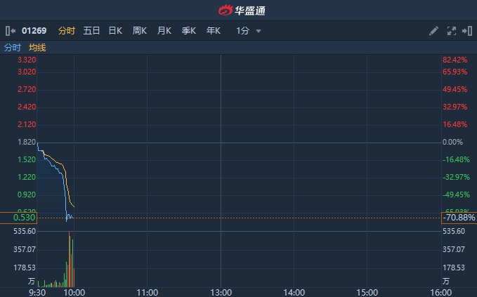 港股异动 | 首控集团(01269)放量闪崩 现跌超70%创三年半新低
