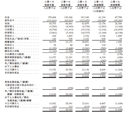 公司收益2016至2018财年为递增状态,18财年后,收益大幅递减,由2264万元减至379万元,到2019年显示亏损128万元。而2017到2019年,收入分别是1.39亿元、1.86亿元、6780万元,18财年后收入出现缩减。
