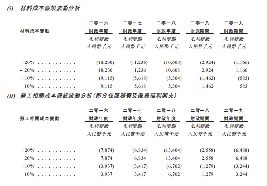 公司的销售收入成本主要由材料成本及劳工相关成本组成,数据解决方案及资讯科技维护支援服务的直接成本架构主要受劳工相关成本影响,而软硬件销售及相关服务为一体的综合服务的直接成本架构主要受材料成本影响。2019财政期间材料成本为580万元,同比递减。劳工成本为3250万元。