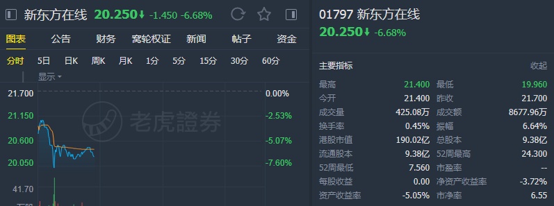 该行称,新东方在线自上市以来股价大幅上涨,累积升113%,认为公司为长期发展而作的业务重组将短期内影响增长前景,加上市场竞争的不确定性。另外,越来越多竞争对手如有道、中公教育等都在进入大学生市场,预计新东方在线2020年度收入增长放缓至30%,至12亿元人民币,并相信要延后一年至2022年才可扭亏。该行表示,将其目标价由13港元下调至11.6港元,评级由“增持”降至“减持”。