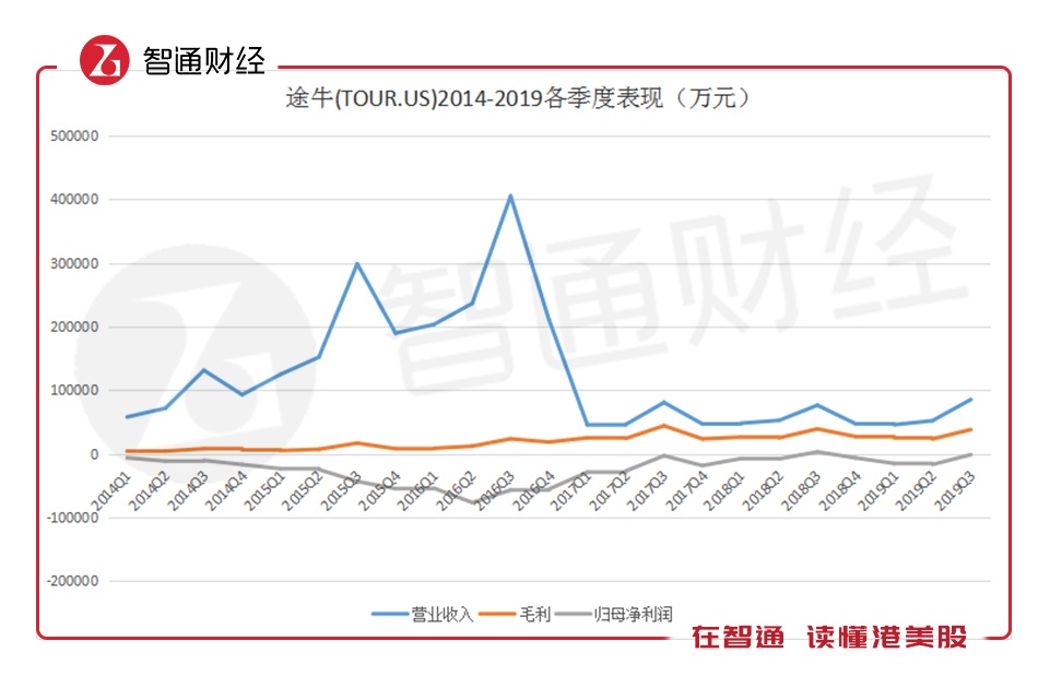 智通财经APP了解到,自途牛2014年上市以来,公司便一直处于亏损状态。其中,公司营收于2014-2016期间快速增长后,于2017年一季度始便快速滑落并维持低位。归母净利润方面,除2018年三季度实现3102万元盈利外,其余季度均处于亏损状态。据可统计数据,2013年至2019年近7年时间内,途牛净利润已累计亏损57.31亿元人民币,归母净利润累计亏损57.07亿元人民币。