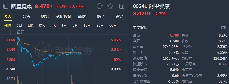 智通财经APP获悉,中金公司发布报告称,阿里健康(00241)1H20业绩显示营业收入41.17亿元,同比增长119.1%。净亏损762.9万元,调整后净利1.39亿元,盈利能力明显提升;经营性净现金流4.76亿元,业绩超该行预期,主要是新零售型业务增长超预期。该行表示,维持其“跑赢行业”评级,上调目标价8%至10.9港元。