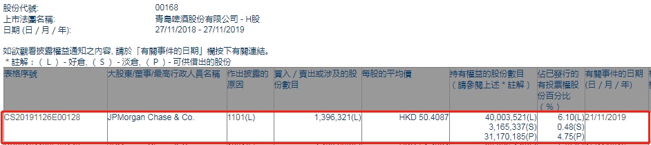 智通财经APP获悉,港交所最新资料显示,11月21日,摩根大通增持青岛啤酒(00168)139.6321万股,每股作价50.4087港元,总金额约为7038.67万港元。增持后最新持股数目约为4000.3521万股,最新持股比例为6.10%。