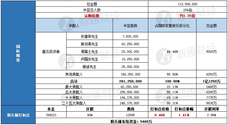 国际配售申购人数未披露,认购倍数约1.25倍。