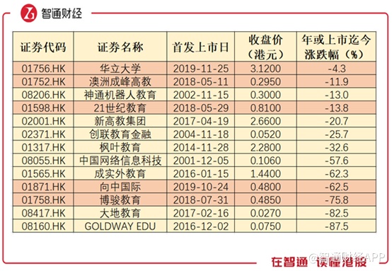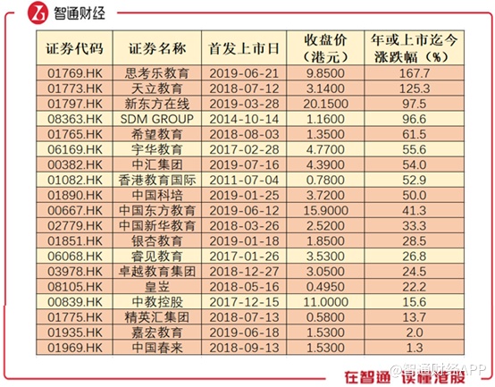 经智通财经APP统计,在教育板块33支个股中,截至11月27日收盘,今年或者上市以来上涨的有19支,下跌的有13支,民生教育则不涨不跌。