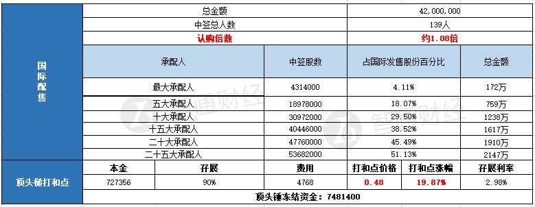 国际配售申购人数未披露,认购倍数约1.08倍。