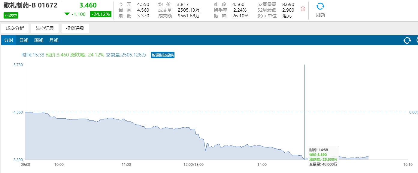 因此,受政策形势,以及市场前景等综合因素影响,歌礼跌幅近25%。