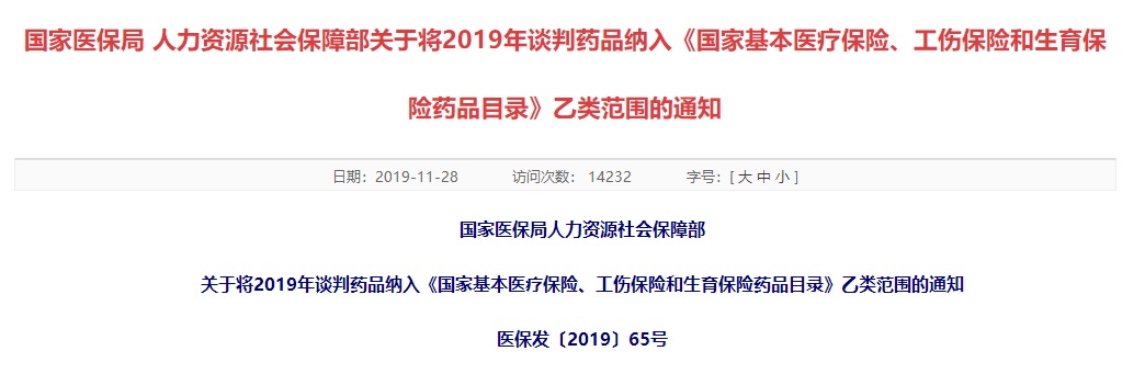 11月28日午间,国家医保局、人社部公布了完整版的2019年《国家基本医疗保险、工伤保险和生育保险药品目录》,目录共收录药品2709个。与2017年版相比,调入药品218个,调出药品154个,净增64个。此次,新版目录将于2020年1月1日正式实施。