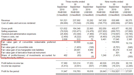 导致公司在第三季度净利润大涨的根本原因是以可转换可赎回优先股导致的公允价值变动被计入了公司的当期损益。