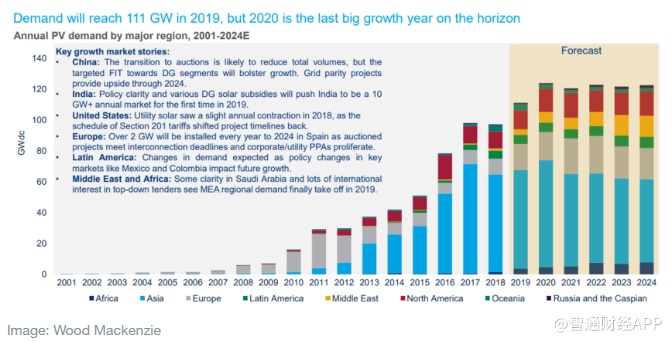 随着世界各国继续增加太阳能装机容量,伍德麦肯兹预测,2020年将是太阳能产业大幅增长的最后一年。