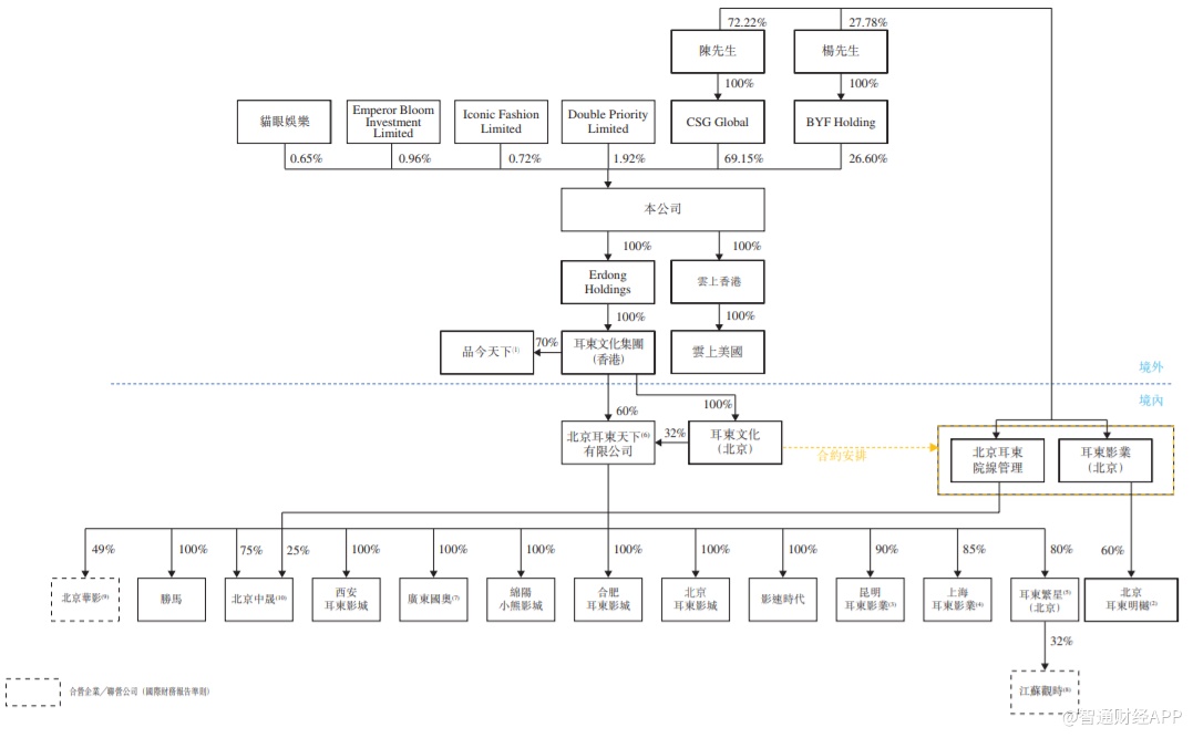 耳东影业为一家于2015年成立且总部位于北京的影视文化集团,在整个中国影视文化产业链中拥有综合能力。公司的核心业务分部涵盖影视文化产业链的上下游领域, 其中包括(1)电影及连续剧投资及制作管理;(2)影院运营及管理;及(3)艺人管理。根据行业报告,在主要市场参与者中,公司为中国唯一拥有全部该等能力的电影娱乐集团。按2018年中国电影娱乐公司所投资的电影总数计算,公司名列第七。