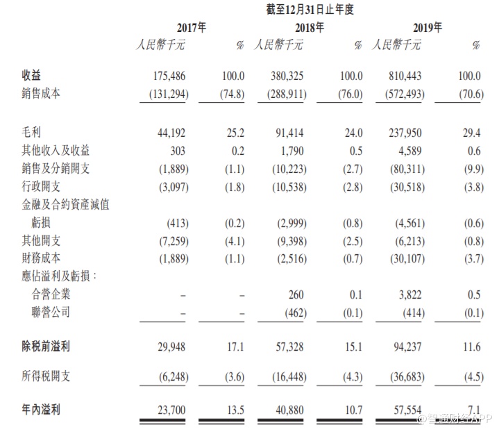 招股书显示,截止2017至2019财年,耳东影业收益分别1.75亿元、3.80亿元及8.1亿元;毛利分别为4419.2万元、9141.4万元及2.38亿元;毛利率分别为25.2%、24.0%及29.4%。年内/期内溢利分别为2370万元、4088万元及5755.4万元。