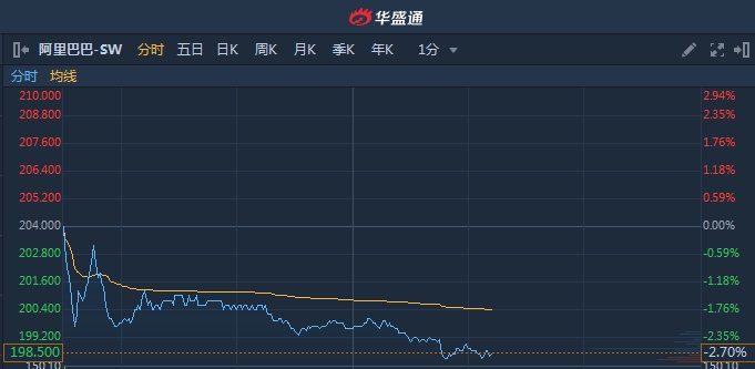 阿里巴巴-SW(09988)午后现4宗大手成交,每股作价介于199元至199.2元,共涉及79.1万股,共涉资1.57亿元。截至14时11分,跌2.75%,报价198.4港元,成交额51.48亿。