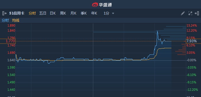 港股异动︱51信用卡(02051)尾盘获资金追捧 放量急升逾11%