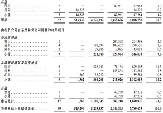 截至2019年9月30日,公司拥有69个由公司的附属公司以及合营企业及联营公司开发且处于不同开发阶段的物业开发项目。