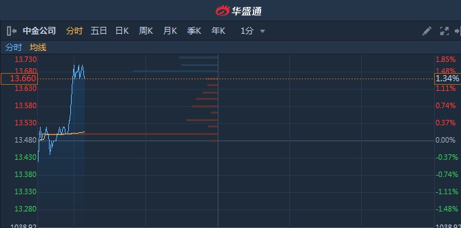 港股异动︱盘中现一宗大手成交涉资1.34亿 中金公司(03908)现涨1.34%