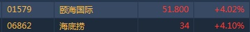 智通财经APP获悉,火锅概念重获资金追捧,截至11时41分,颐海国际(01579)涨4.02%,报价51.8港元,海底捞(06862)涨4.1%。