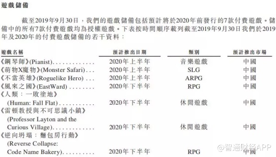 而在游戏储备方面,心动公司表示,截至2019年9月30日,游戏储备包括预计将于2020年之前发行的11款网络游戏及7款付费游戏。