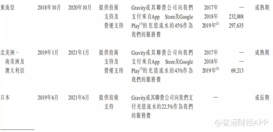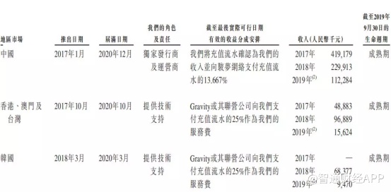 下表概述截至2019年9月30日《仙境传说M》在不同的地区市场中的若干关键安排: