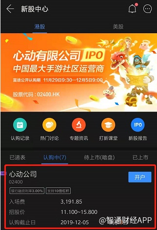 第一步:开好户以及入金完毕。首先就是选择一家香港证券公司,开户一定要选择正规持牌券商。目前支持打新心动公司的券商包括:富途证券,辉立证券,玖富证券,尊嘉证券,华盛证券,时富金融,耀才证券,信诚证券,东方财富和老虎证券。